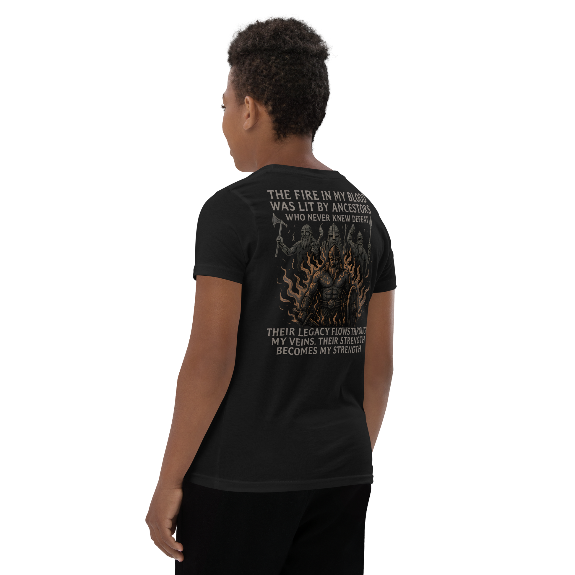 When ancient flames meet modern hearts, legends are reborn. This isn't just a t-shirt—it's a sacred vessel carrying the unquenchable fire that has burned in warrior bloodlines for over a thousand years. Your young Viking doesn't just wear this design; they become the living flame of their ancestors' unbreakable spirit.